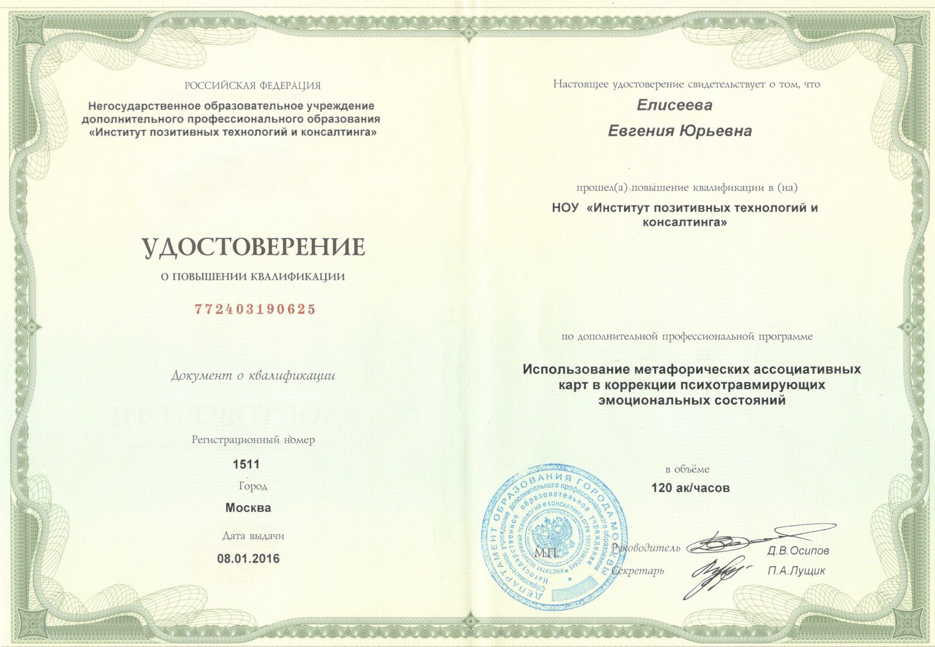 Давно мечтала научиться использовать МАК в профессиональной деятельности. И моя мечта осуществилась в мае 2018. Я прошла полный курс у Евгении Елисеевой. Он длился 3 месяца. Занятия проходили 1 раз в неделю. И это очень удобно. Было достаточно времени для выполнения всех заданий. И их много, что позволило наработку опыта сразу же во время курса.