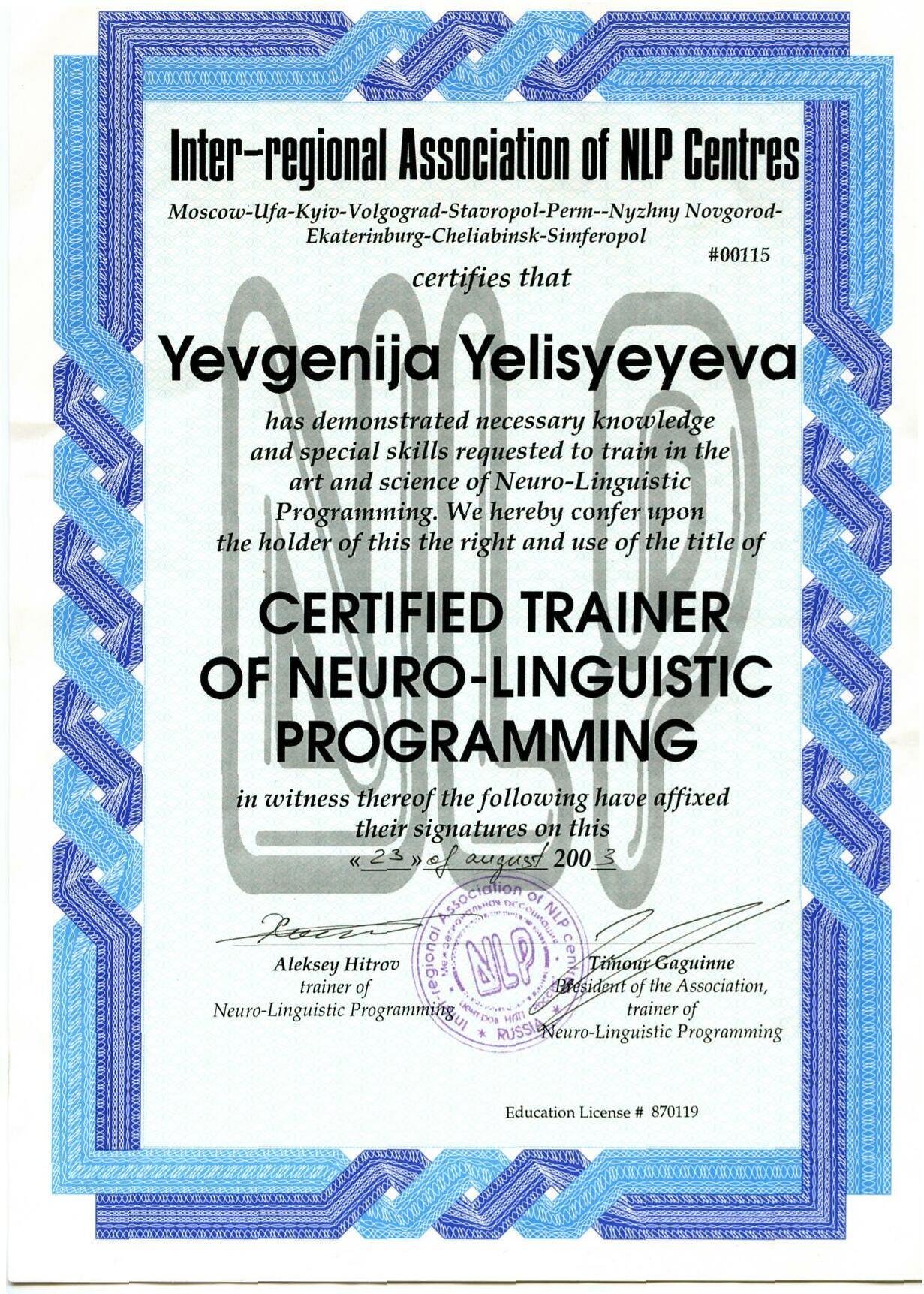 Тренер НЛП и Эриксоновского гипноза